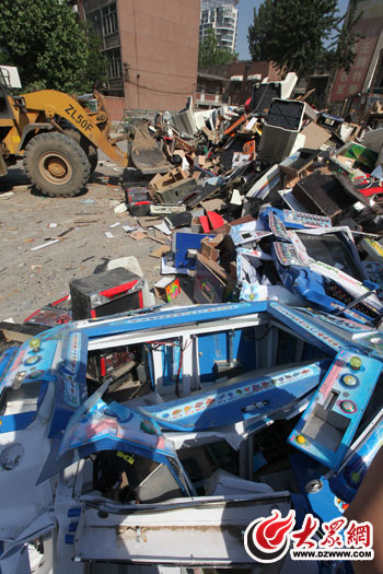 [提要] 今天上午9時,濟南市公安局通報“凈風行動”戰果并公開集中銷毀400多臺賭博游戲機。今年4月份以來,濟南警方共查辦黃賭案件147起,處理違法犯罪嫌疑人492名。自去年9月8日銷毀600余臺賭博游戲機后又一次開展集中銷毀活動,有力打擊了“黃賭毒”犯罪。