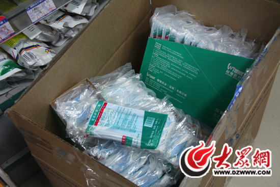 在省城文化東路上的另一家藥店里,8.5元一包醫(yī)用口罩仍然有存貨,為了方便市民購買,藥店直接將半箱口罩放在了收銀臺旁邊的地上。記者了解到,由于霧霾的天氣容易導(dǎo)致呼吸道疾病的發(fā)病率升高,連日來,省城各藥店治療咳嗽、支氣管炎等疾病的藥物銷量也有顯著提高。