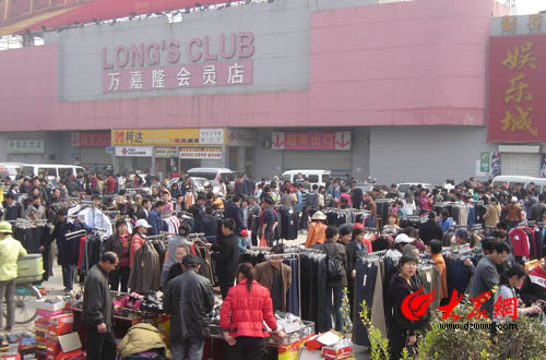 4月5日上午,萬嘉隆超市門前廣場上人頭攢動,很多顧客都在搶購超市打折商品。記者在現場看到,地攤上的商品種類繁雜,T恤、羽絨服、上衣、褲子、鞋子、皮包、廚具、兒童玩具等應有盡有。一位賣T恤的王大爺告訴記者:“這些都是萬嘉隆的貨”,說著還指著萬嘉隆的標簽給記者看:“今天早晨三點我們剛剛把貨提出來,貨總不能壓在自己手里,只能賠錢賣,現在連本都保不住”。記者看到,現場的東西確實很便宜,原價89元的鞋子只要價40,還有很精致的原價258元的皮包只賣100元。“至于超市為什么關門,我們到現在也搞不明白,前一天還正常營業,第二天我們的服務員就進不去了,超市的理由是裝修,但裝修用不著一聲不吭的關門啊。”旁邊賣羽絨服的大哥說。