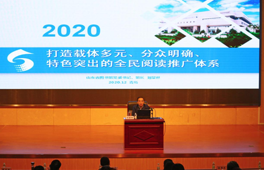 山東省圖書館館長劉顯世做“打造載體多元、分眾明確、特色突出的全民閱讀推廣體系”主題講座,并與現(xiàn)場人員進(jìn)行交流。