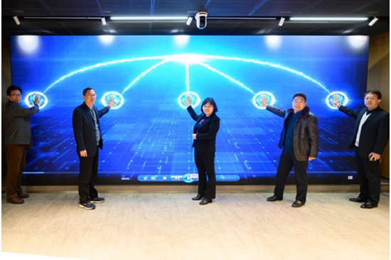 出席活動的嘉賓啟動首屆“山東省人工智能+5G融合創(chuàng)新技能大賽”決賽