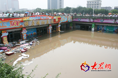 護城河水倒灌 濟南銀座購物廣場成澤國