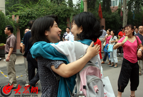 剛過10點30分,考點門口就已經聚滿了前來接考生的家長,警方不得不在學校門口拉起了警戒線來維持秩序。11點,考試結束的鈴聽拉響,近千名家長在考點門口翹首以待。11點02分,第一名考生步出考點,隨后,考生們陸陸續續地走了出來。記者隨機采訪了幾名考生,他們告訴記者,今年的作文題目是《偶然的發現》,感覺考題不是太難,考的都還可以。