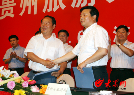 推介會上,貴州省黔東南州、貴陽市、安順市作了重點推介,貴州和山東兩省的旅游局、旅游企業(yè)簽訂了合作協(xié)議。