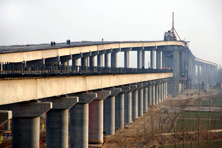 The first highway-railway bridge on the Yellow River is finished in Binzhou, east China's Shandong Province December 30, 2006. The 7,000-metre bridge ended the history of Binzhou as a former revolutionary base without railways.
