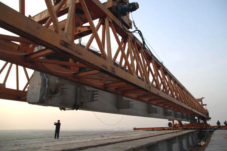 The first highway-railway bridge on the Yellow River is finished in Binzhou, east China's Shandong Province December 30, 2006. The 7,000-metre bridge ended the history of Binzhou as a former revolutionary base without railways. |