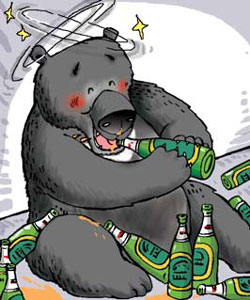 A black bear in a wildlife zoo in Weihai, Shandong Province, has quite a taste for alcohol. But what amazes zookeepers most is that it knows when to stop drinking before it becomes drunk.