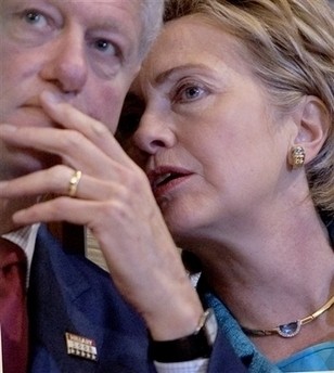 New York Senator and Democratic presidential hopeful Hillary Clinton, right, whispers to husband and former US President Bill Clinton at the Abyssinian Baptist Church, October 27, 2007 in New York. [Agencies] | Ford felt the same way in 1992, imploring then-President George H.W. Bush to get rid of Dan Quayle as his vice- presidential candidate to spark a reelection campaign that was "dead in the water". The effort failed and Bush lost.