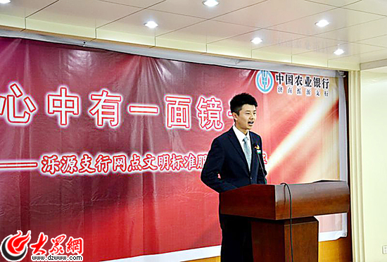 農行濟南濼源支行將優質文明服務作為生命線,日前,利用晚上時間舉辦了“我心中有一面鏡子”網點文明標準服務演講競賽,來自該行營業網點的前臺柜員、客戶經理、理財經理等參加了比賽。