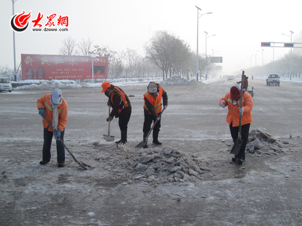 環衛工人正在清掃積雪