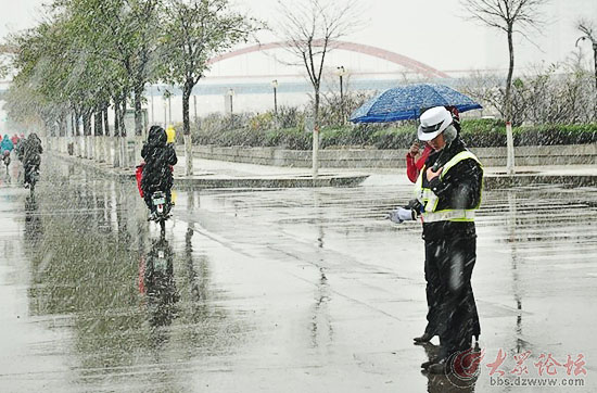 交警在雪中執勤