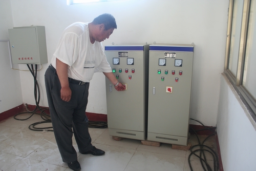 圖2:工作人員在操作變頻控制柜,啟動設(shè)備、控制管道壓力。