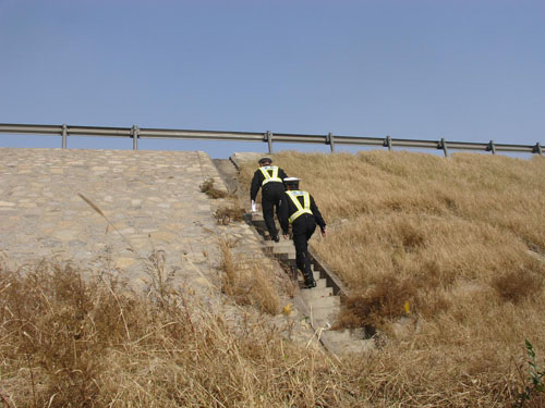 排查活動中,該大隊堅持做到“四查四看”,即:一是查高速公路防護設施完好情況,看有無人員、牲畜通過破損隔離網進入高速公路范圍內;二是查中央開口柵,看有無開口柵未封閉、或封閉不牢固;三是查警示標志標牌,看警示標牌有無損壞、脫落現象;四是查收費站、服務區廣場,看重點區域警示標志標牌是否齊全、反光標識是否清晰。對能夠及時整改的,大隊民警了立即對隱患進行整改修復;對不能立即整改的,通過下達“整改通知書”的形式,通知高速公路營運單位進行整改修復,并對隱患排查整改工作進行跟蹤督促。此外,該大隊民警還要求服務區、收費站工作人員,對附近安全島反光標志、標示進行了清洗,以達到最佳的反光效果,時刻警醒駕駛人,保證行車安全。