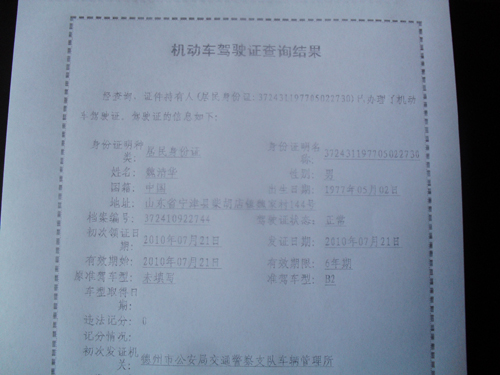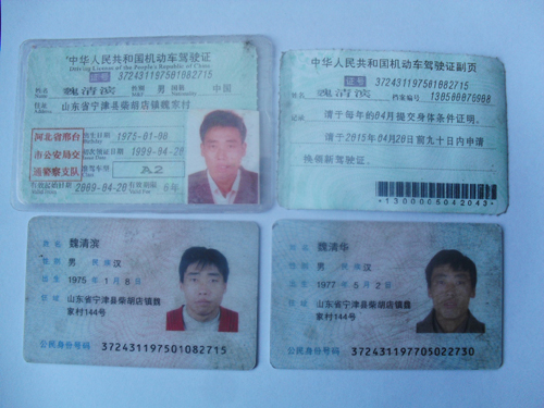 2011年3月19日10時(shí)許,寧津交警大隊(duì)秩序中隊(duì)中隊(duì)長(zhǎng)劉輝帶領(lǐng)民警在縣城煙草路口執(zhí)勤時(shí),發(fā)現(xiàn)一輛紅色牌照為魯N93317、魯NW229(掛車(chē))解放型重型半掛牽引車(chē)實(shí)施闖禁行交通違法行為,執(zhí)勤民警立即將其攔下進(jìn)行檢查,在檢查駕駛?cè)宋耗硻C(jī)動(dòng)車(chē)駕駛·行駛證皮夾,查看駕駛?cè)宋耗硻C(jī)動(dòng)車(chē)駕駛證時(shí),發(fā)現(xiàn)駕駛?cè)宋耗绸{駛證證號(hào)和魏某身份證證號(hào)不相符,民警隨將駕駛?cè)宋耗硯У浇痪箨?duì)秩序科進(jìn)行詢(xún)問(wèn),經(jīng)過(guò)調(diào)查,查明駕駛?cè)宋耗常ㄉ矸葑C號(hào):372431197705022730)的證號(hào)為372431197501082715的駕駛證為偽造駕駛證,是魏某通過(guò)辦理假證件渠道,花了200元錢(qián)偽造套用了他人的駕駛證,現(xiàn)交警將魏某偽造的駕駛證予以收繳,車(chē)輛暫扣,并依法追究駕駛?cè)宋耗车姆韶?zé)任。