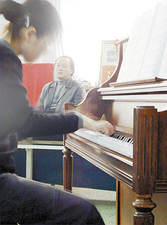 為提高淄博市藝術教育的水平和教師的素質與水平,1月4日上午,來自山東藝術學院等高校的專家們對淄博市青少年宮業余藝校的老師們的演奏進行了點評,針對孩子們背誦樂譜等方法進行了指點。圖為專家認真聆聽鋼琴演奏。