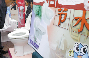 3月21日,一位濟南市民在泉城廣場參觀節水潔具。