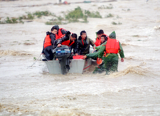 這時(shí)又接到報(bào)告,還有人被困在里面。海潮已漲了四米多,海面上騰起一個(gè)個(gè)嚇人的開花浪,形勢萬分危急,每一秒鐘都人命關(guān)天!這時(shí)候,再想趟著海水去救人已經(jīng)不可能了,駐濰部隊(duì)的戰(zhàn)士們運(yùn)來的沖鋒舟,也從未在風(fēng)力超過8級的海水里使用過,在11級臺風(fēng)和暴雨呼嘯聲中,他穿上救生衣就和一名駕駛沖鋒舟的戰(zhàn)士又一次下了海。