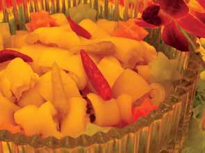 魯菜,豪爽中透著一股霸氣,調(diào)和五味,與山東大漢直爽的性格相得益彰;粵菜,選料精細(xì)、口味考究,雖不像川菜那樣爽直,卻以其婉約細(xì)膩的風(fēng)格舒展著您的味蕾,如同一股清泉注入身心,清新爽快;川菜,則紅紅火火、熱情奔放,帶給您酣暢淋漓的感覺,如同看到自己崇拜的球星進(jìn)球一樣痛快,讓您的每個(gè)毛孔都迸發(fā)出積聚許久的熱情。魯、粵、川經(jīng)典菜品相搭配,美滋美味的感覺與看世界杯賽事一樣,令您欲罷不能!