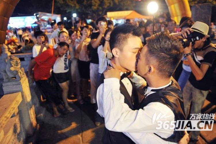 福建泉州首對男同公開結婚,當街拍婚紗照并激吻。13日中午,泉州關帝廟附近的一影樓非常熱鬧,一對同志(男同性戀者)正在拍婚紗照。他們是福建首對公開結婚的同志——24歲的陸忠和20歲的劉萬強。十一期間,他們將在寧德老家舉辦婚禮。