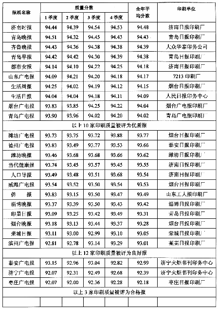 2002年度彩色報(bào)紙印刷質(zhì)量匯總表