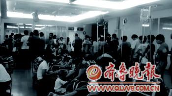 [提要] 7月31日,在婦兒醫(yī)院輸液大廳內(nèi),等待給孩子輸液的家長排起了長隊(duì)。7月31日,在青島市婦兒醫(yī)院急診室外的候診區(qū)坐滿了等待就診的家長和患兒,不少患兒的額頭上還貼著淡藍(lán)色的退熱貼。
