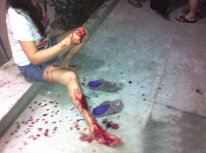 12日下午三點多,搜狐視頻在其官博中,也貼出了這一監控視頻,并介紹稱“江蘇靖江市某公務員之子當街狂砍手無寸鐵婦女”。“網傳江蘇靖江市某公務員之子當街對劉某女孩非禮,遭女孩反抗,一氣之下從車上拿出砍刀連砍劉某34刀,場面兇殘血腥,傷者身上多處血管破裂,跟腱斷裂,縫了上百針。并當眾狂叫:賤女人摸一下會死?”