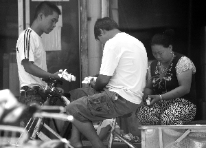在這條巷子里,除了周師傅家外,還有幾家是做早點的,路邊已經擱了幾盆正在晾曬的筷子。“他們每天上午10點來鐘收攤后就洗筷子。天氣涼快的時候在屋外洗,熱的時候在屋內洗。洗完后就將筷子擱外面,一直到下午才收,也不管落不落灰。”胡同里的居民宋女士告訴記者。