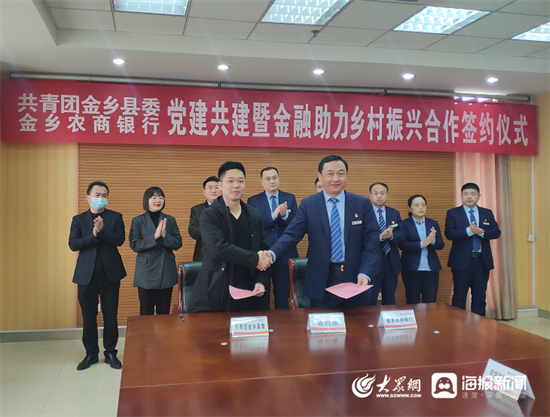 為深入貫徹新發展理念,服務鄉村振興,全面深化銀團共建,實現組織聯建、活動互聯、資源共享。近日,金鄉農商銀行與共青團金鄉縣委舉行了黨建共建暨金融助力鄉村振興戰略合作簽約儀式。