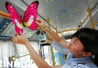 “五彩蝴蝶”飛進(jìn)濰坊市區(qū)公交車
