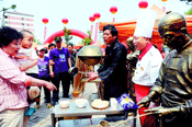 趵突泉公園免費為游客和環(huán)衛(wèi)工人送上臘八粥
