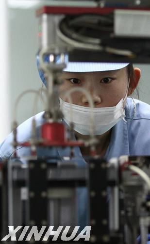 7月5日,山東濰坊一家臺(tái)灣獨(dú)資太陽能硅片制造企業(yè)車間內(nèi),自動(dòng)檢測(cè)設(shè)備正在對(duì)多晶硅片進(jìn)行檢測(cè)。