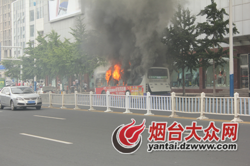 [提要] 7月6日下午1時(shí)許,煙臺(tái)市區(qū)南大街路段上,一輛21路公交車疑似自燃著起大火,由于火勢(shì)兇猛,短短幾分鐘公交車便被燒得面目全非,所幸司乘人員撤離及時(shí),沒有受傷。