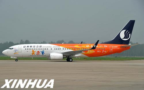 [提要] “亞沙號(hào)”采用波音737-800機(jī)型,機(jī)身噴繪有將于2012年在山東省海陽(yáng)市舉辦的第三屆亞洲沙灘運(yùn)動(dòng)會(huì)的會(huì)徽、吉祥物和“快樂在一起”的口號(hào)。“亞沙號(hào)”采用波音737-800機(jī)型,機(jī)身噴繪有將于2012年在山東省海陽(yáng)市舉辦的第三屆亞洲沙灘運(yùn)動(dòng)會(huì)的會(huì)徽、吉祥物和“快樂在一起”的口號(hào)。