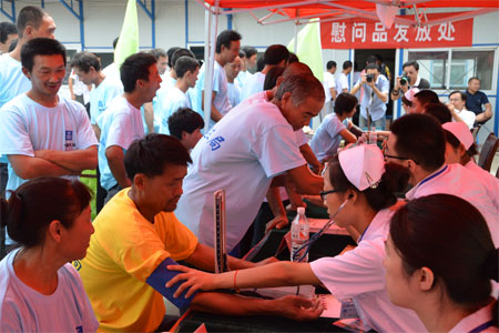 啟動儀式現場,濰坊市衛生局組織的志愿者為現場的農民工進行了義診服務。儀式結束后,參加儀式的各位領導還視察了該項目部農民工宿舍、食堂及文體活動室等場所。
