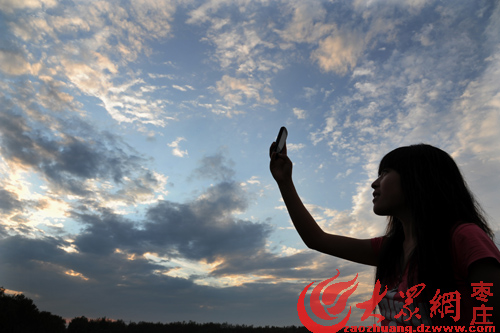 大眾網棗莊8月8日訊(特約記者 李宗憲)8月7日,棗莊市山亭區的一名女孩在用手機拍攝美麗的晚霞。受今年第9號臺風“梅花”的影響,當日,棗莊市迎來一場降雨,臺風過后棗莊天空出現美麗晚霞。