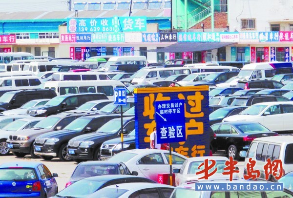 在位于燕兒島路和東海路交會處的二手車交易市場,有六七家可以代辦過戶的中介機構,此外,市場還提供舊機動車的收購、銷售、租賃、信息等服務。23日下午2時許,記者在院內看到,院內停滿了等著交易的車輛。記者走訪發現,院內的車大都是中檔車,也不乏奧迪、奔馳等高檔車。