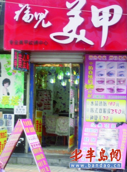 很多愛美的女孩子為了讓自己變得更漂亮,往往會選擇整容,但由于這些美容整形機構質量參差不齊,也經常會有人在整形之后達到了相反的結果。8月26日,家住城陽的夏女士向記者反映,去年8月19日,她在臺東一家名叫福兒的美甲店做完雙眼皮手術后,眼睛腫了一年多。28日上午,記者對臺東附近5家美容美甲店進行了暗訪,發現其涉嫌非法行醫和超范圍經營。青島市衛生監督局表示,將會對這些美容美甲店進行調查,一經查實將會按照國家法律法規嚴肅處理。