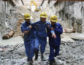 。“事故”發生后,施工單位首先啟動應急預案,對傷員進行簡單處理,關閉現場電力開關,啟動備用電源,同時拉起警戒線,搶險人員調配機械及物資趕赴現場,對現場自來水管線處抽排積水。