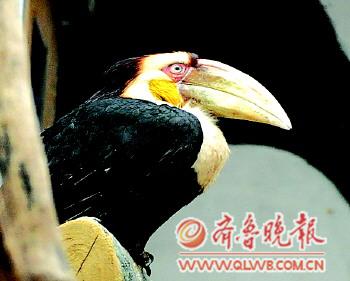 來自非洲的犀鳥在暖氣房內很悠閑。