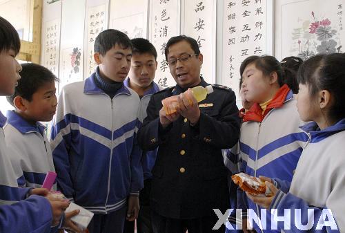12月1日,工商執(zhí)法人員向?qū)W生傳授食品識假辨劣知識。新華社記者范長國攝