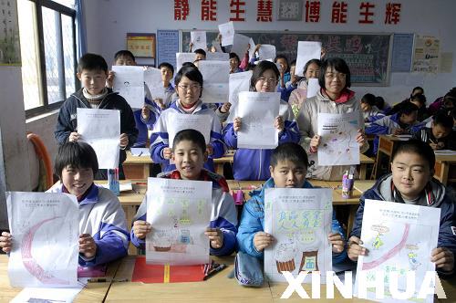 12月1日,學(xué)生在展示自己繪制的“我心中的食品安全”作品。新華社記者范長國攝