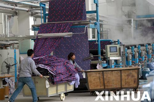 [提要] 12月13日,在威海麗浦維爾印染公司,工人正在裝運印染的花布。目前,已有12個單體投資過千萬美元、以高檔面料為主的韓國紡織染整企業入住該工業園,10個投資過千萬美元的韓資項目正在準備和建設中。