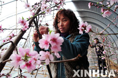 [提要] 1月30日,山東省乳山市育黎鎮(zhèn)上宋家村育豐合作社社員在圓紅桃大棚里給桃樹捆枝。新華社發(fā)(劉國賢 攝) 育豐合作社帶動30多戶農(nóng)民大棚種植圓紅桃,去年每公斤賣出40元的好價(jià)錢。今年新春伊始,社員們就在大棚里忙著給桃樹授粉、捆枝和控溫,盼著今年再有好收成。
