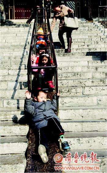 自述:孩子們在臺階的石板上打滑梯,快樂年“滑”。