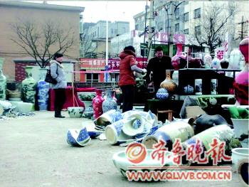 22日夜間,突然刮起大風,泰城方圓廣場上的不少瓷器被刮倒摔碎,兩家瓷器商損失10萬元以上。據泰安市氣象臺預報,24日有小雨雪,25日夜還有6級陣風。 本報記者 劉來 攝