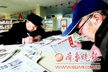 讀報的老人,看到自己感興趣的內容會記錄在小本子上。
