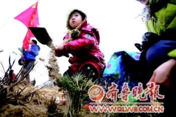 [提要] 4日上午,百余名市民齊聚套子灣,在雪中共同種下一片海防林。由齊魯晚報·今日煙臺和煙臺市林業局共同主辦的義務植樹活動,目前繼續接受報名,歡迎社會各界踴躍參加。