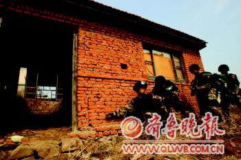 圖一:偵查隊員正在分析“歹徒”藏匿房間內(nèi)的情況。