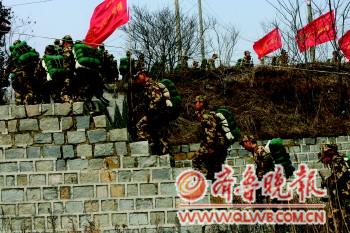 [提要] 圖二:模擬突發(fā)情況,新兵分組對抗成為最精彩的一個科目。奪紅旗、攻占山頭、分組對抗、突發(fā)情況處置……8日,記者跟隨武警青島支隊的新兵體驗野營拉練,經(jīng)過兩個多月的訓(xùn)練,這些90后戰(zhàn)士拉練都鉚足了勁。