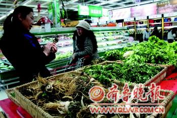 [提要] 20日,在新華路佳樂家超市內(nèi),“春野菜”專柜引來不少市民選購。香椿、苦菊、苦菜、薺菜……今春上市的野菜品種十分豐富。記者了解到,野菜雖然營養(yǎng)豐富,味道鮮美爽口,而相比普通蔬菜價格要高一些,多數(shù)野菜的價格在10-20元/斤。